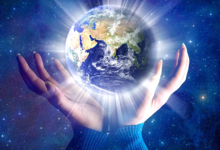 Vi bygger gennem vores meditationer, bønner og så uselviske tanker som muligt et gyldent lysfelt rundt om menneskeheden og Moder Jord.
